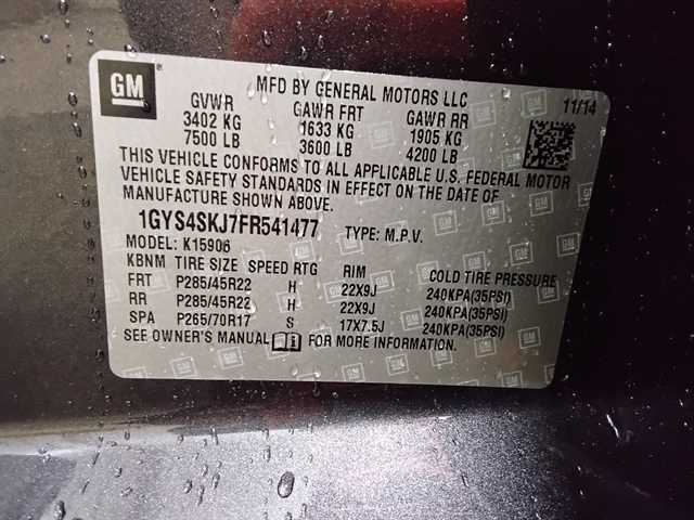 VIN | 1GYS4SKJ7FR541477 |
