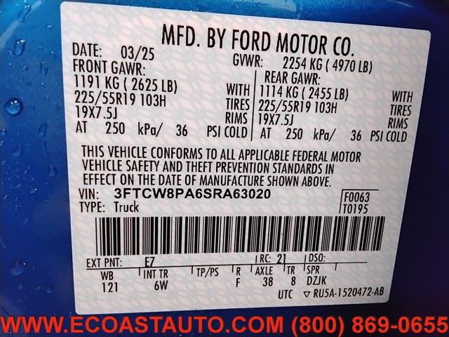 VIN | 3FTCW8PA6SRA63020 |