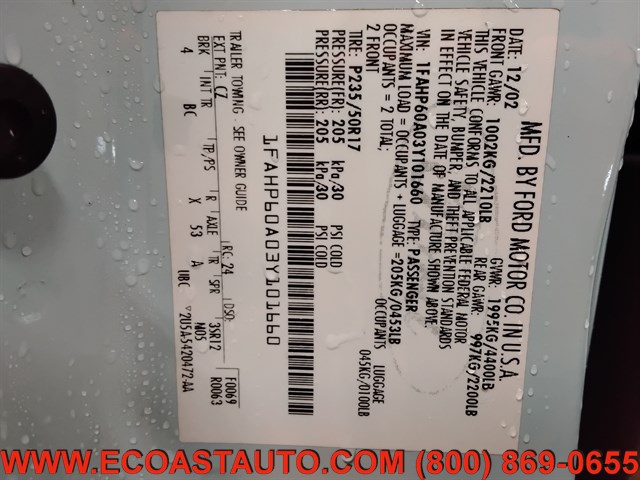 | VIN | 1FAHP60A03Y101660 |
