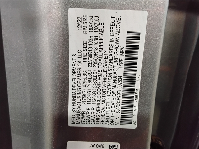 | VIN | 5J6RS4H49PL002834 |