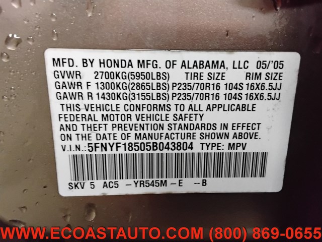 | VIN | 5FNYF18505B043804 |