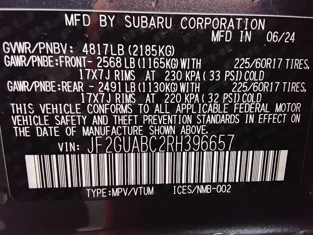 | VIN | JF2GUABC2RH396657 |