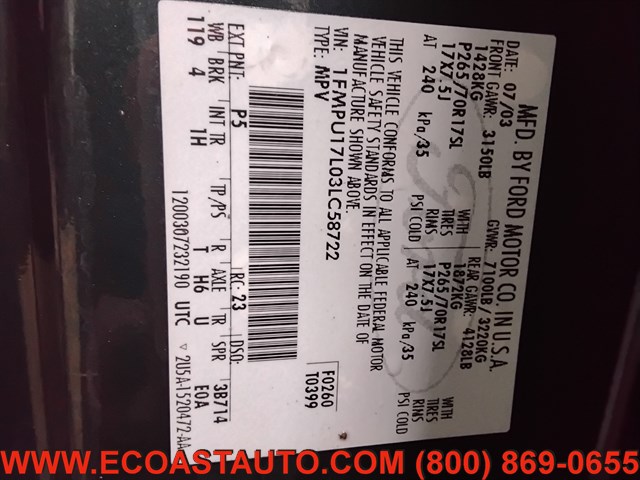 | VIN | 1FMPU17L03LC58722 |