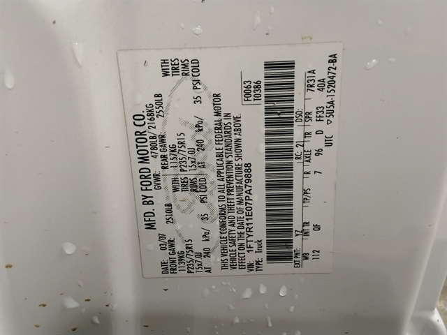 VIN | 1FTYR11E07PA79888 |