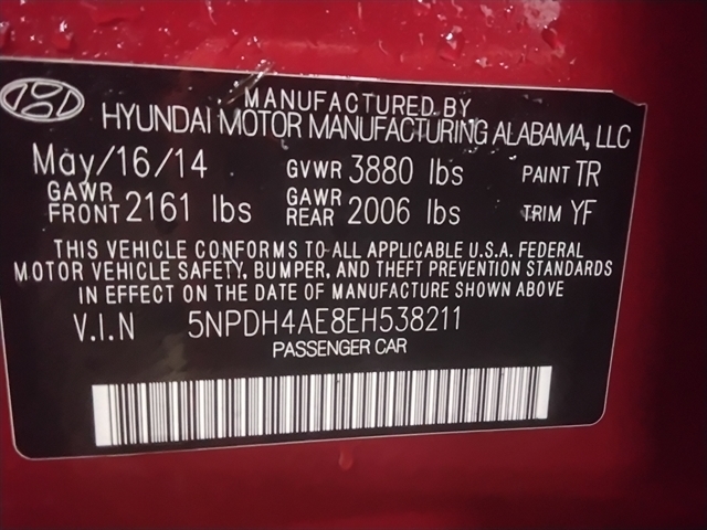 | VIN | 5NPDH4AE8EH538211 |