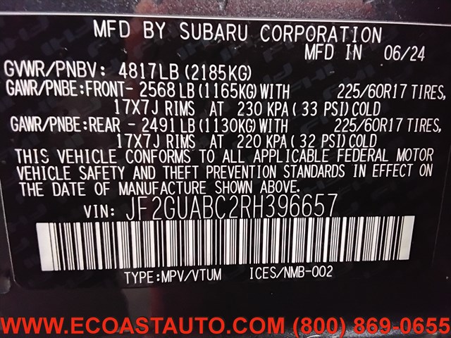 | VIN | JF2GUABC2RH396657 |