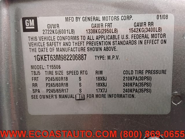 | VIN | 1GKET63M982206887 |