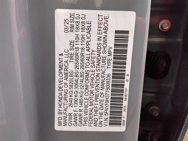 | VIN | 5FNYF9H37TB009336 |